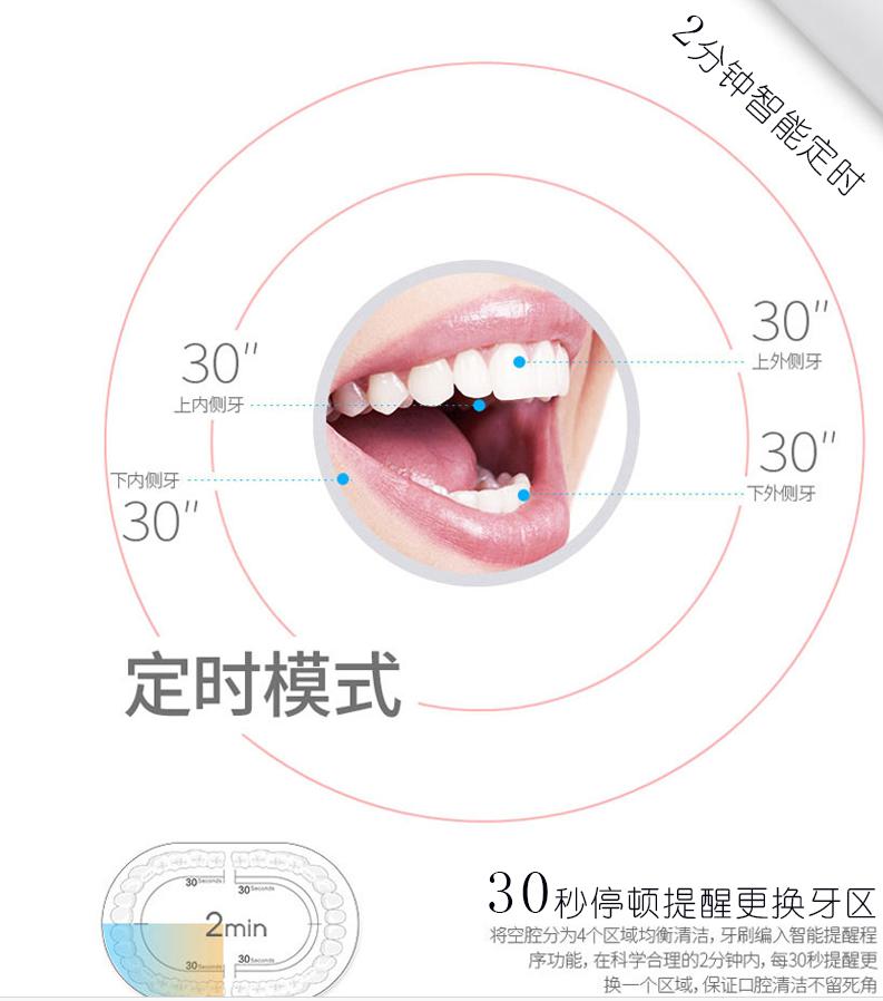 然后還有2分鐘定時,30秒暫停停頓提示功能,不帶腦子都可以養成良好的刷牙習慣啊